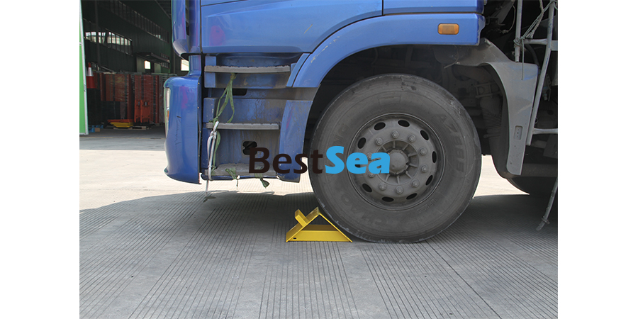 Steel wheel chock is used for any loading dock environment, can save lives in the event when a trailer begins to roll or shift while loading or unloading. The steel wheel chock can increase the holding capacity, with steel handle for convenient carry.